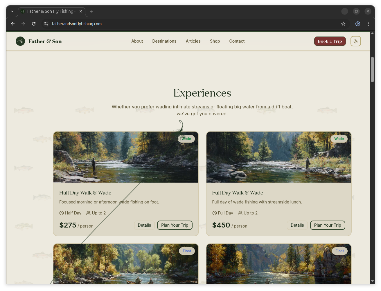 We helped a fly fishing guide turn an informal, manual booking process into a clear, professional digital system that set expectations for clients, reduced back-and-forth communication, and created new revenue channels—without requiring technical expertise to run.