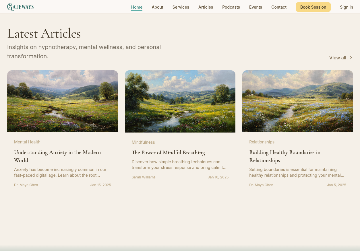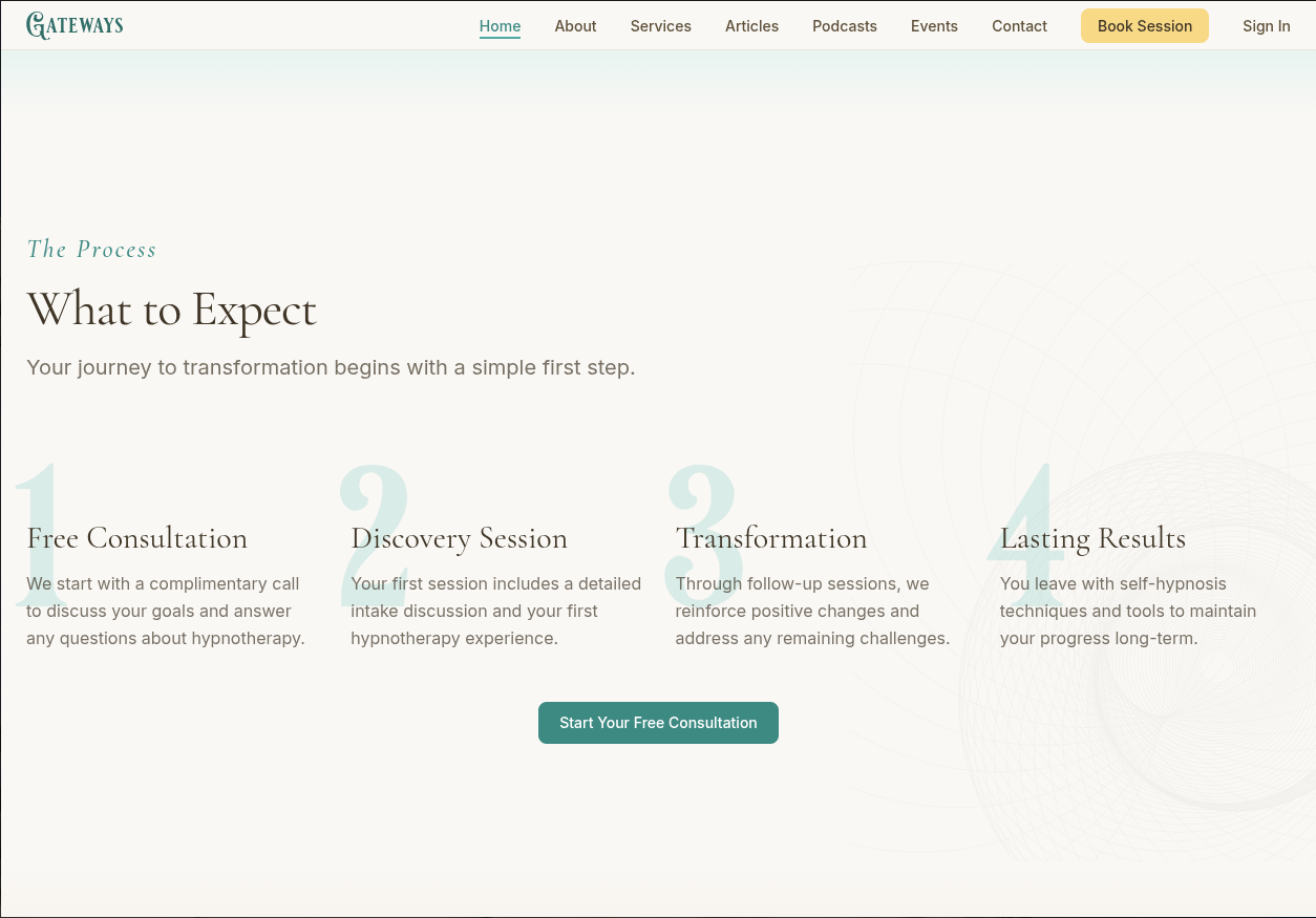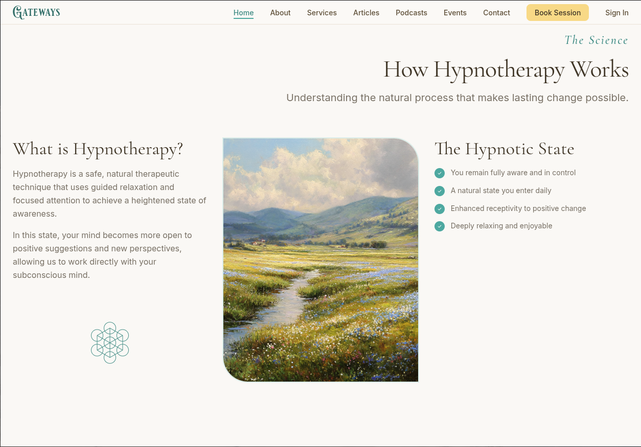 Because we didn't treat the practice like a generic service business. We designed around the emotional realities of hypnotherapy, simplified systems instead of adding new ones, and matched the digital experience to the quality of in-person work. The platform supports the practice instead of competing with it.